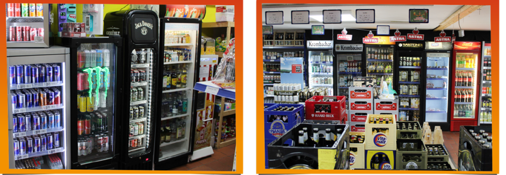 Angefangen bei Bonbontüten zum selber zusammenstellen, süße, saure und salzige Leckereien, eine Vielzahl an Getränken, wie Weine und Biere, kühle und erfrischende Getränke, eine große Auswahl an Waren des täglichen Bedarfs (wie z.B. Kaffee, Tee, Fertiggerichte) bis hin zu zahlreichen Rauchartikeln, (z.B. Zigaretten, Tabak, Feuerzeuge) Präsente und vieles mehr.